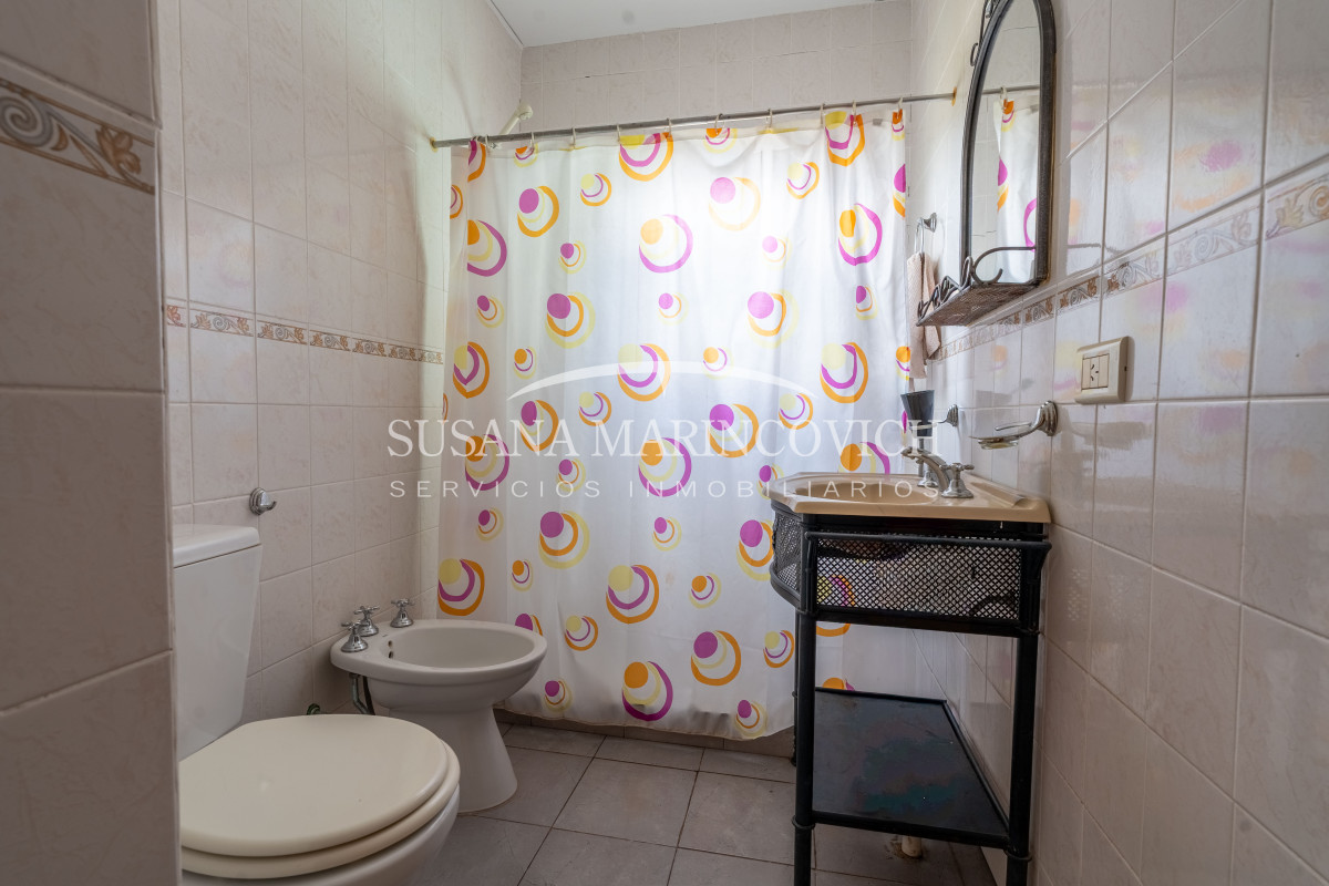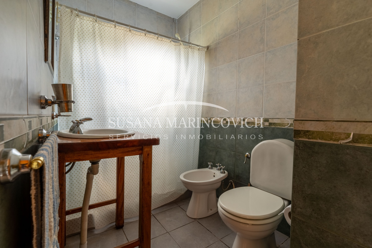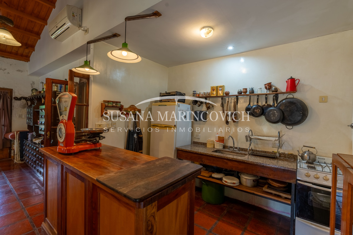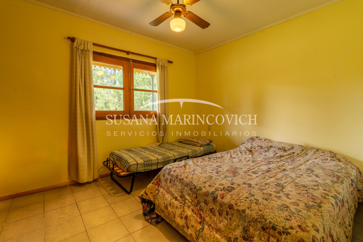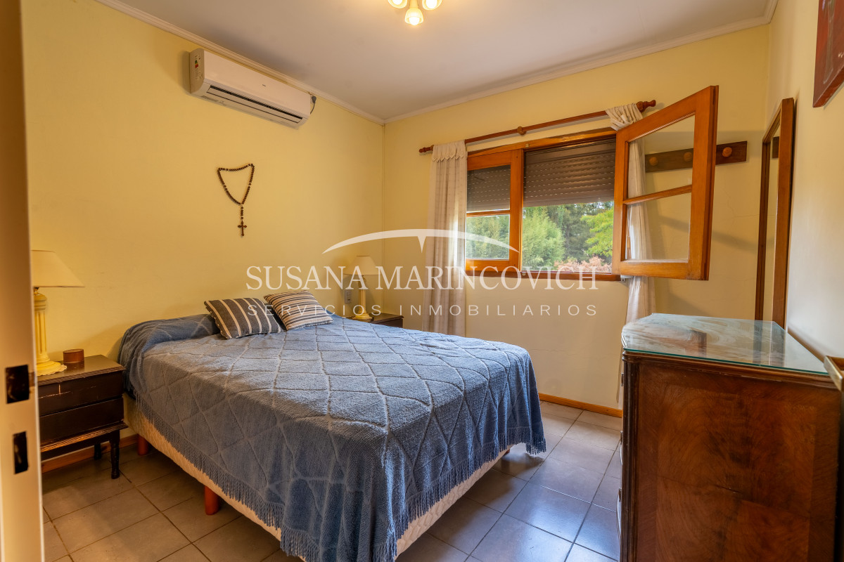 La casa principal cuenta con una superficie cubierta de 150 m² y se compone de living comedor, tres habitaciones, una de ellas en suite, y un baño completo para visitas. La vivienda dispone de losa radiante en todos los ambientes, lo que permite una climatización uniforme.