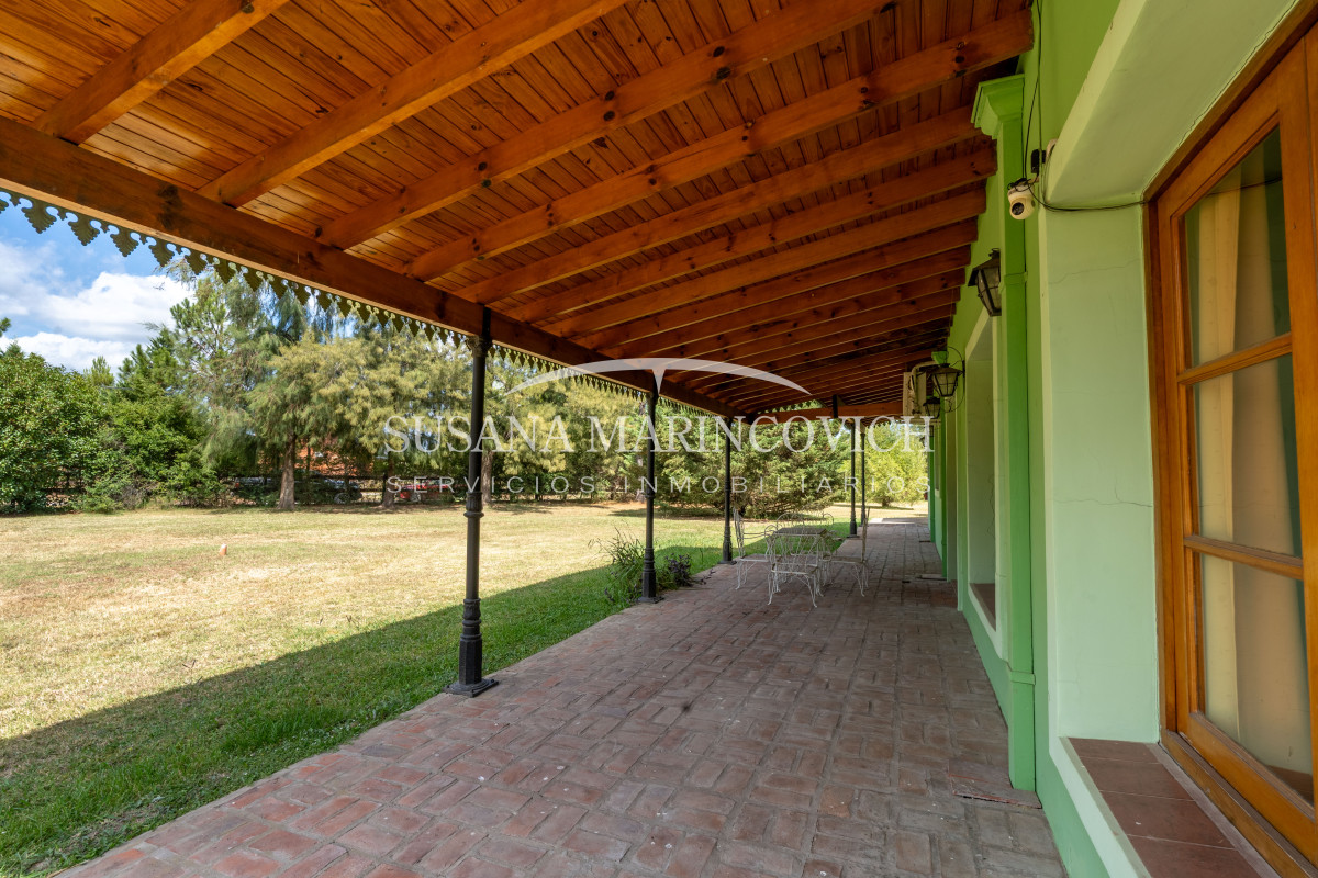 En el exterior, la propiedad posee aproximadamente 60 m² semicubiertos de galerías, con parrilla techada que también puede utilizarse como espacio de guardado para vehículo. Además, cuenta con hidromasaje exterior, una fuente en el jardín y un galpón de guardado de 30 m² destinado a herramientas y equipamiento.