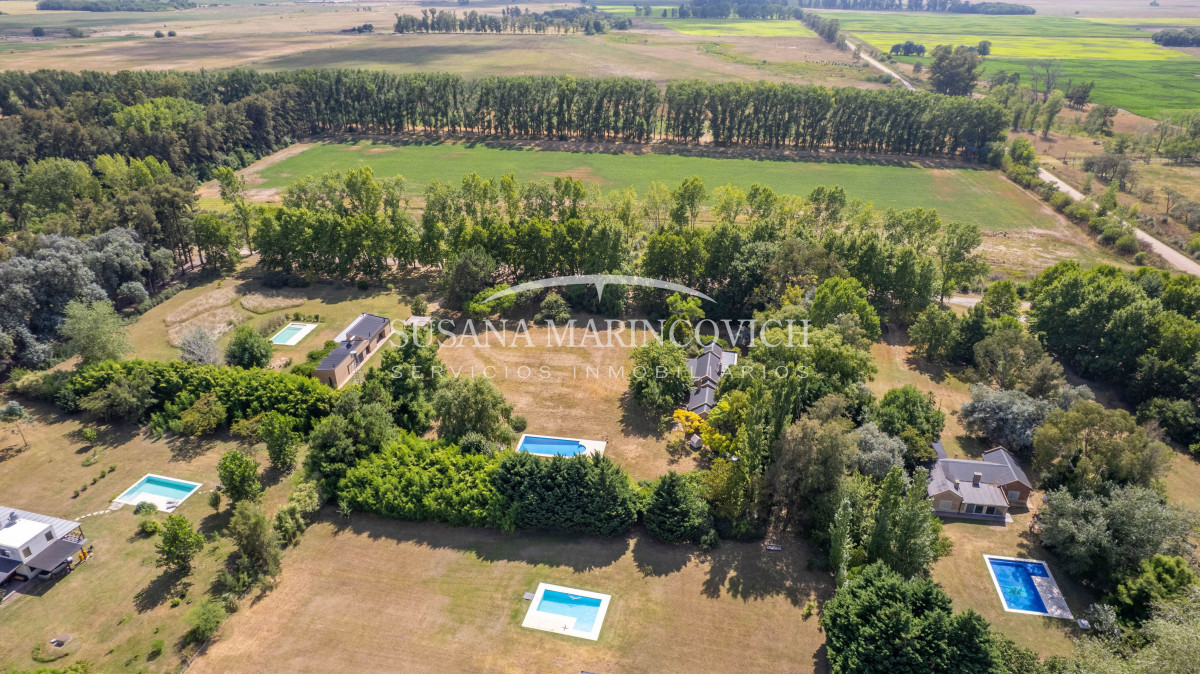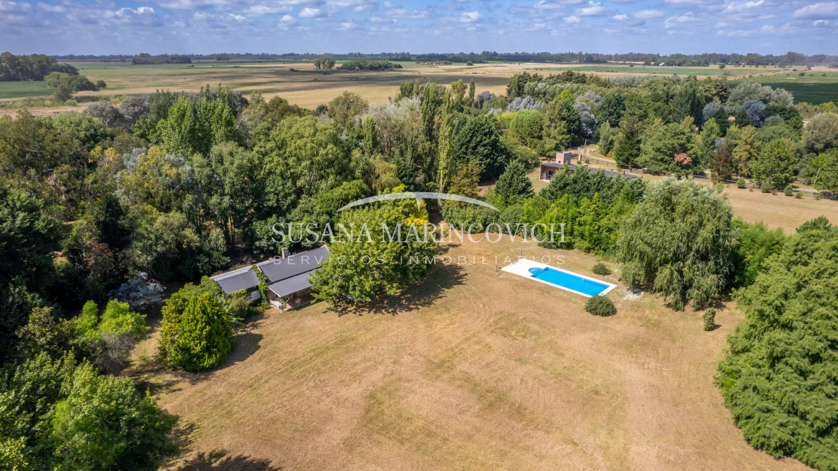 Propiedad ubicada en El Chamical, barrio cerrado de San Andrés de Giles, desarrollada sobre un terreno de 6.400 m², con casa principal y pileta de 5 x 10 metros.