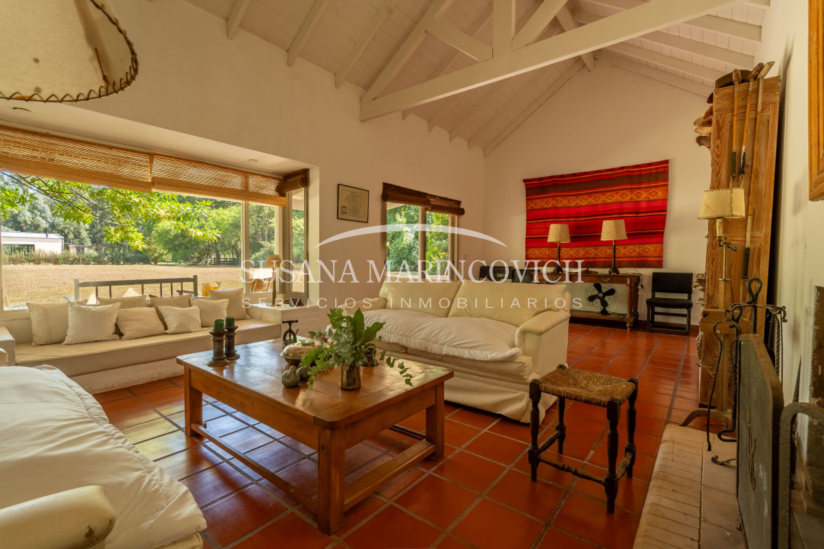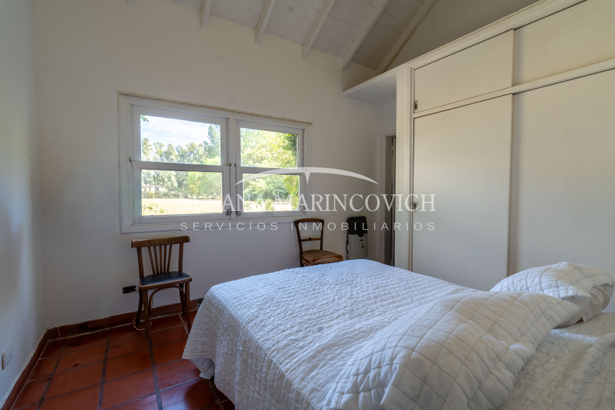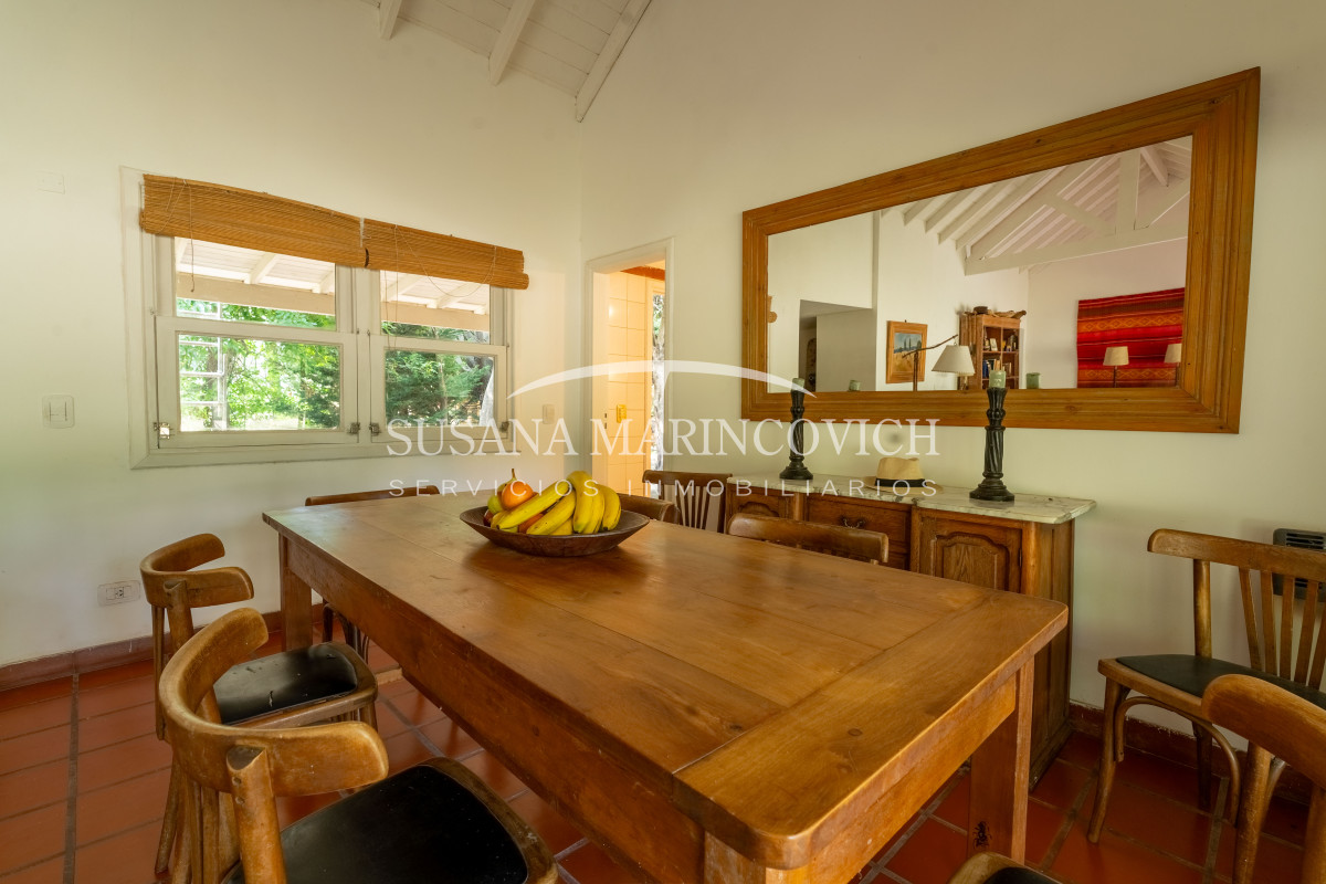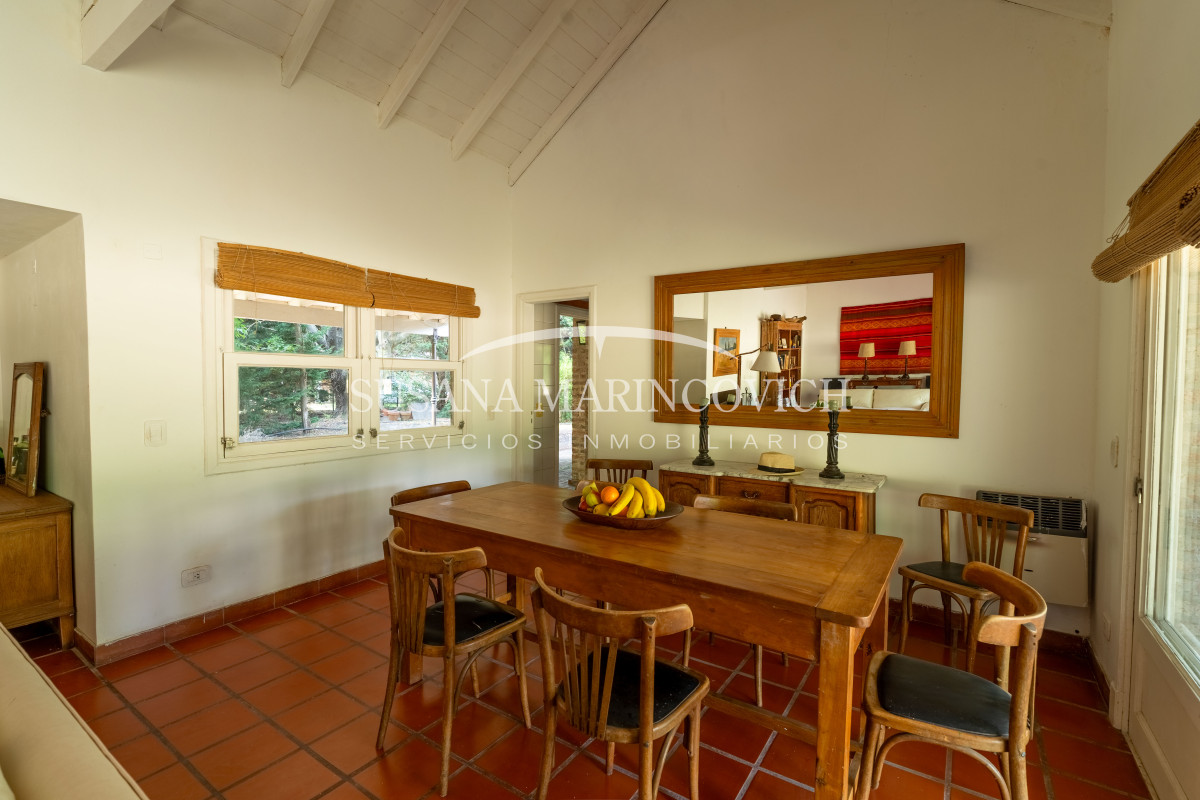 La casa principal cuenta con un amplio living comedor con estufa a leña, cocina, baño de visitas y tres habitaciones, una de ellas en suite. Los ambientes se distribuyen de manera funcional, con conexión directa entre las áreas sociales y privadas.