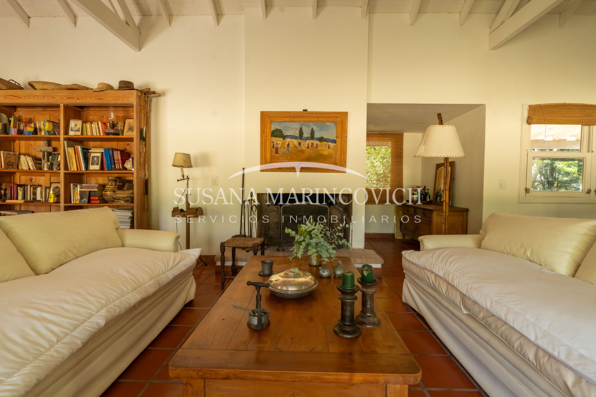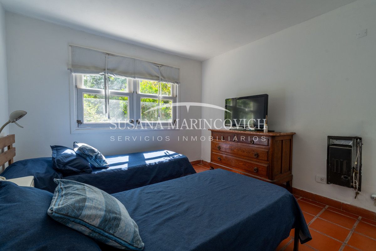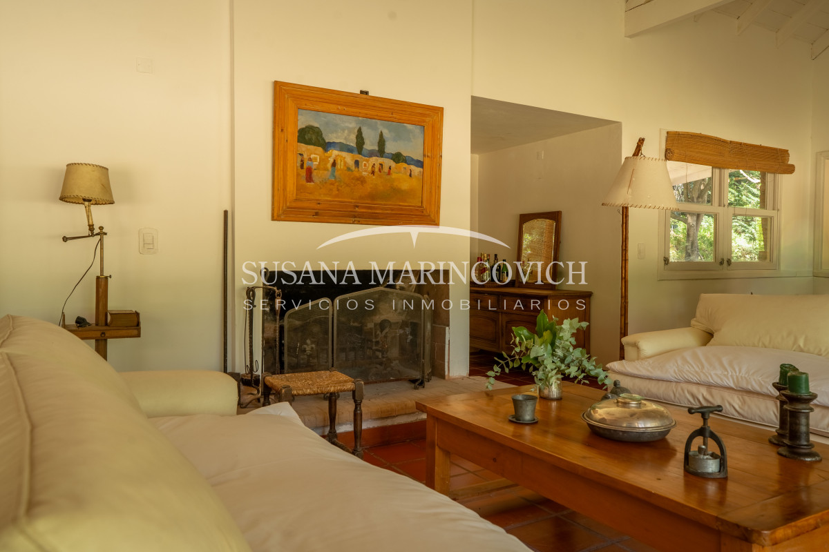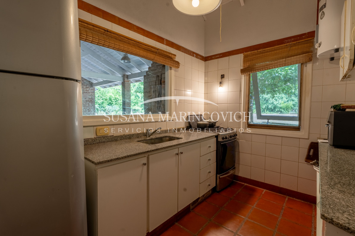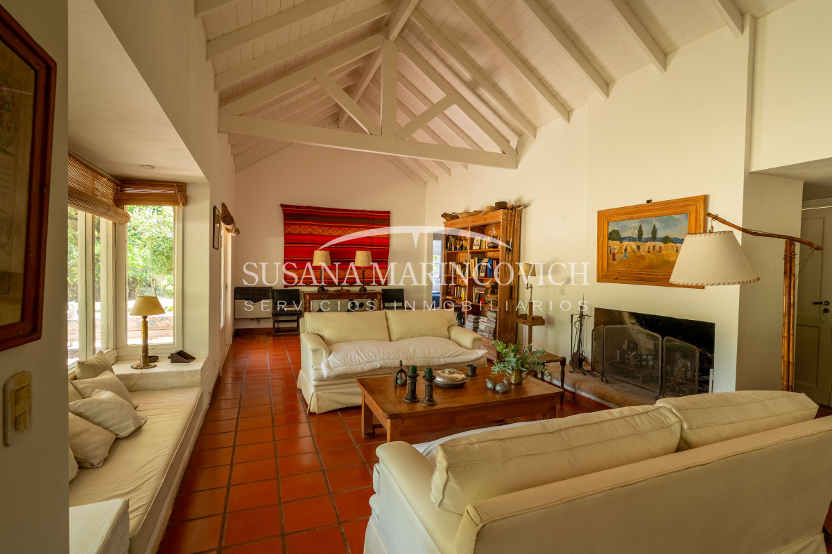 La casa principal cuenta con un amplio living comedor con estufa a leña, cocina, baño de visitas y tres habitaciones, una de ellas en suite. Los ambientes se distribuyen de manera funcional, con conexión directa entre las áreas sociales y privadas.