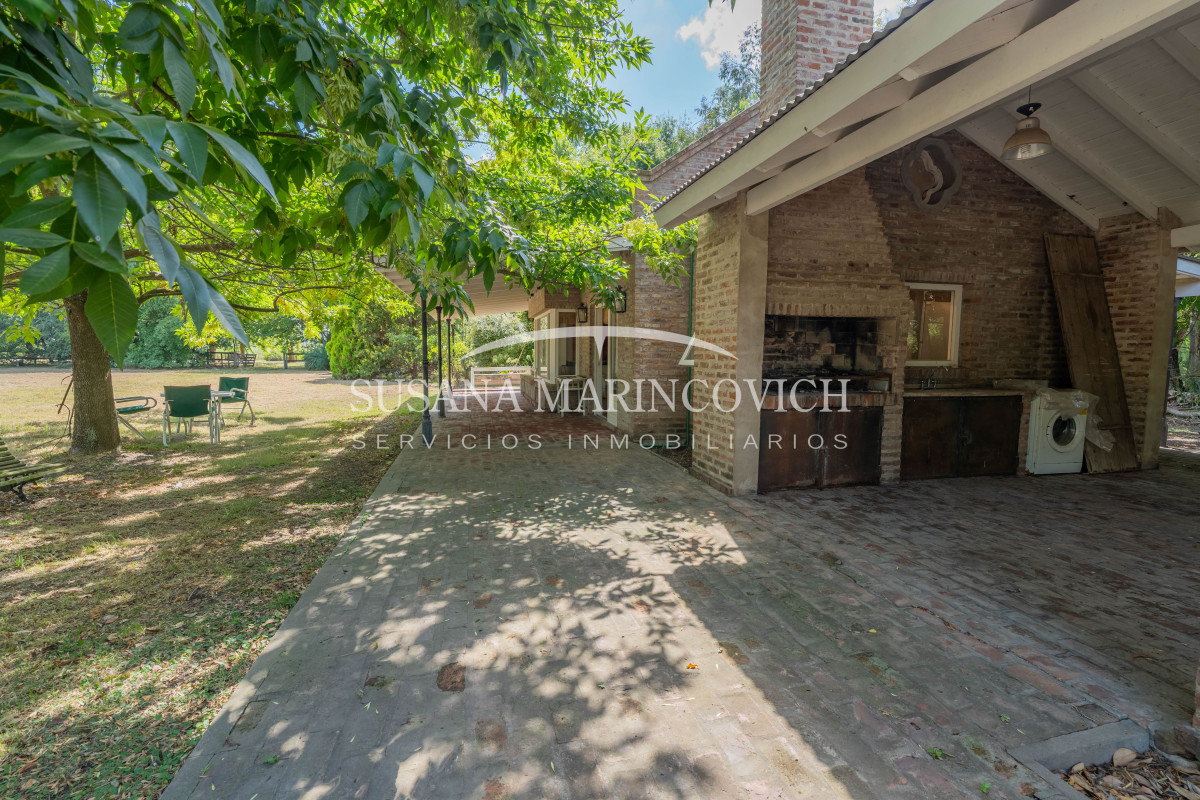 En el exterior, la propiedad dispone de galerías techadas al frente de la casa y parrilla bajo techo, con posibilidad de utilizar ese sector como espacio de resguardo para vehículo. Además, cuenta con un galpón destinado al guardado de herramientas y equipamiento.