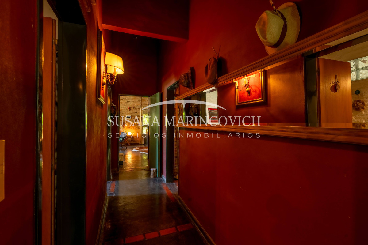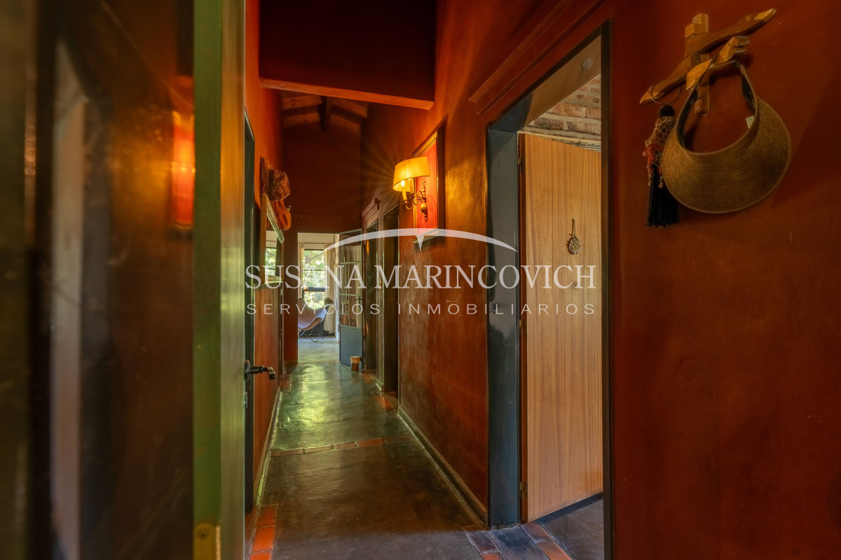 Desde el pasillo central se accede al lavadero, baño, habitación con baño en suite y a un segundo dormitorio. Al fondo del pasillo se encuentra la habitación principal, con baño en suite y acceso al jardín de invierno con estufa a leña y vista al parque.