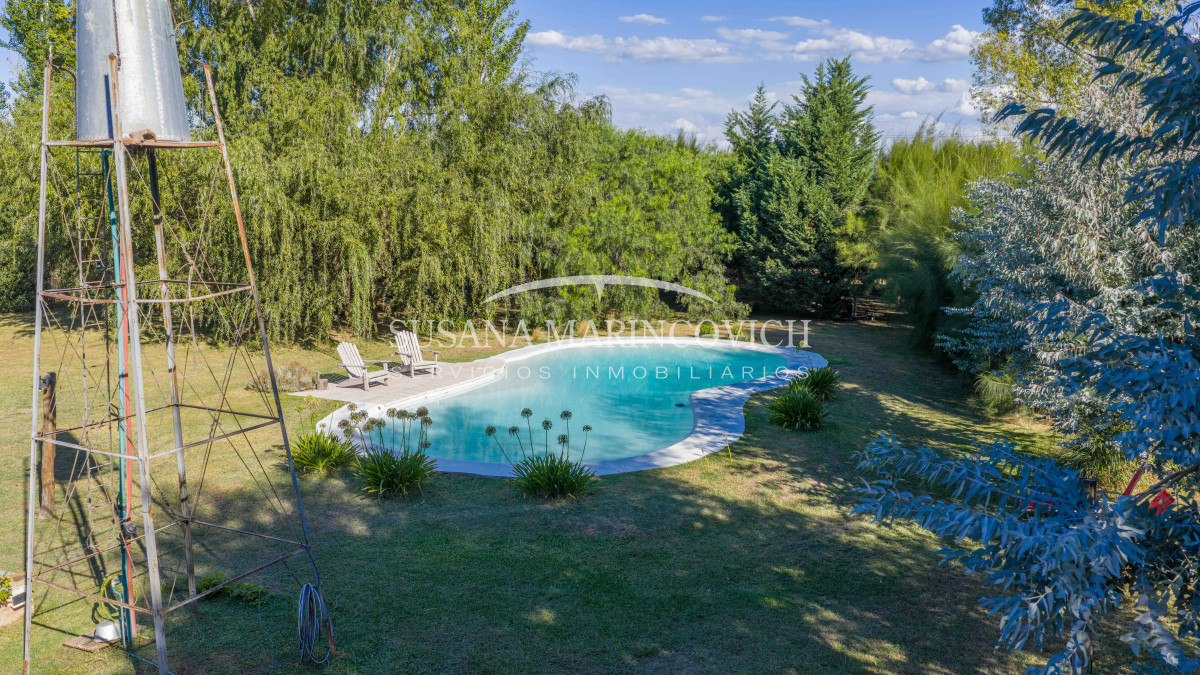 Casa en venta ubicada en el barrio de chacras El Chamical, en San Andrés de Giles. La propiedad cuenta un terreno de 5.000 m² con pileta, arboleda consolidada en el lote y en el perímetro.