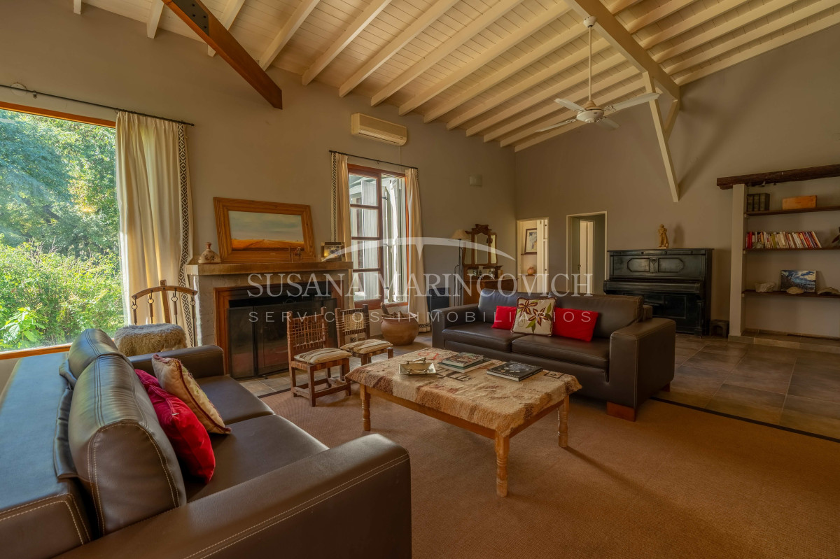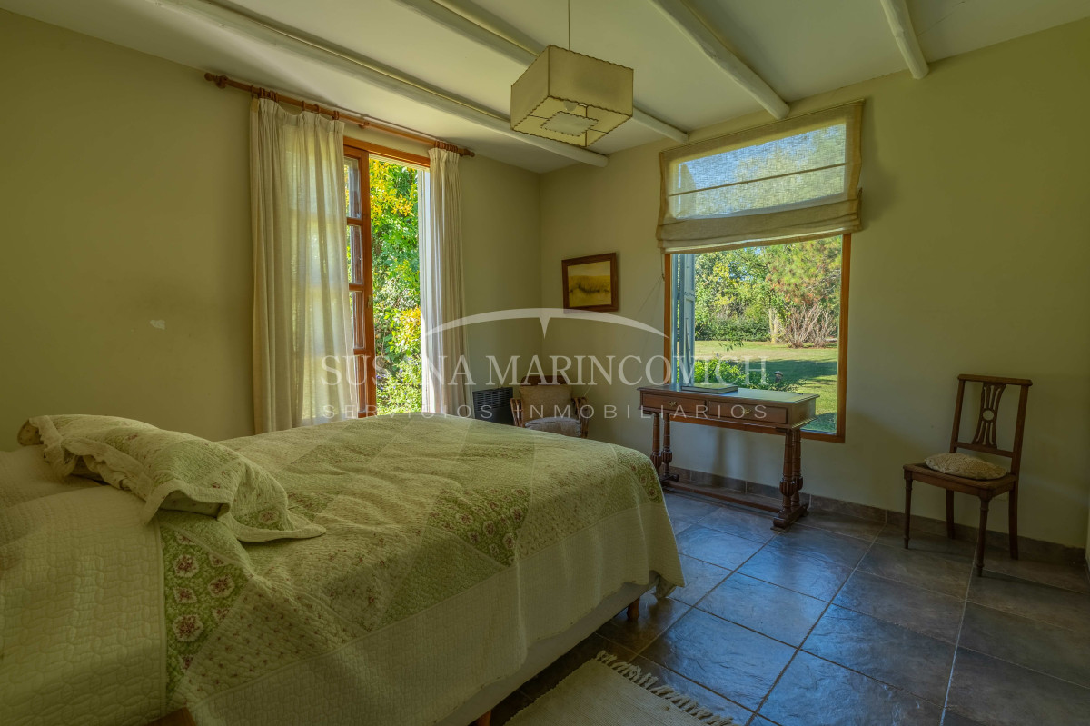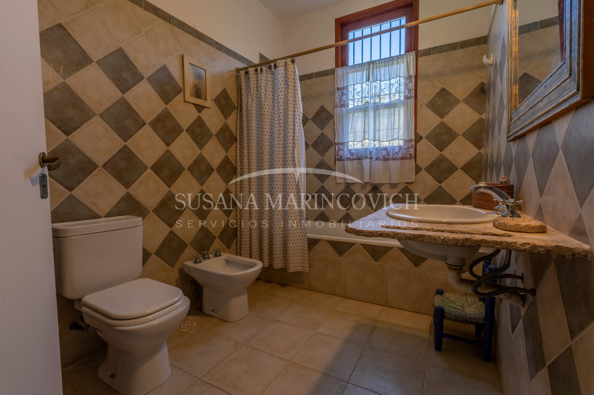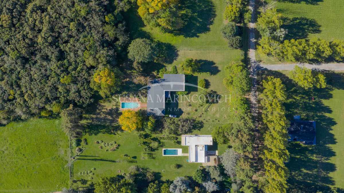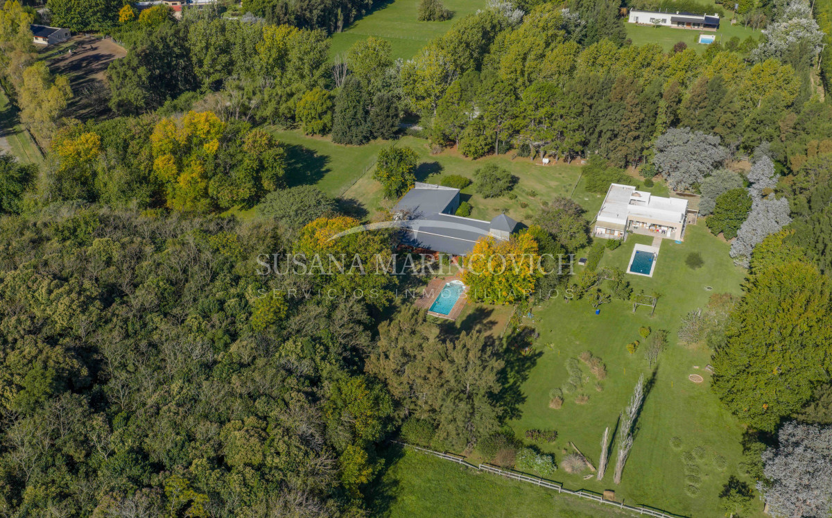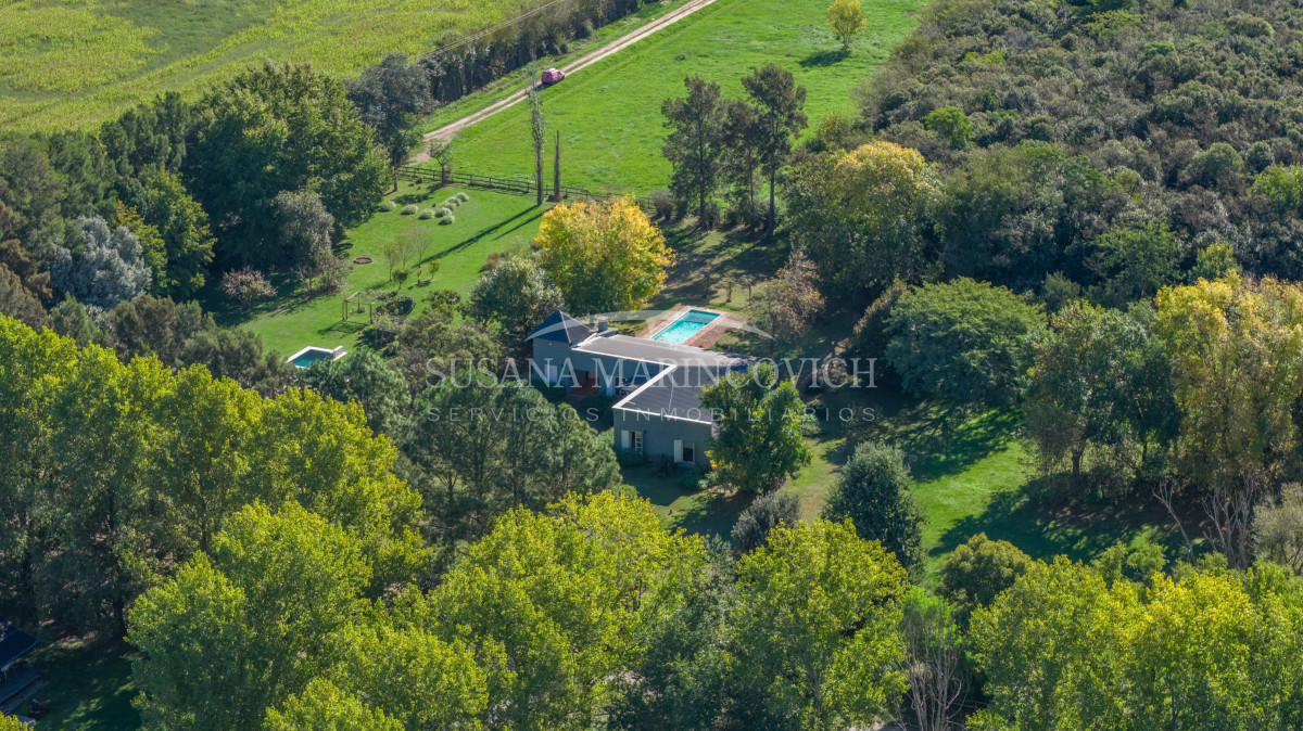 Cuenta además con un galpón que integra lavadero, baño completo y dormitorio de servicio. La pileta dispone de sistema de filtrado propio. La propiedad tiene sistema de alarma, luz eléctrica de línea, grupo electrógeno y perforación a 75 metros de profundidad.