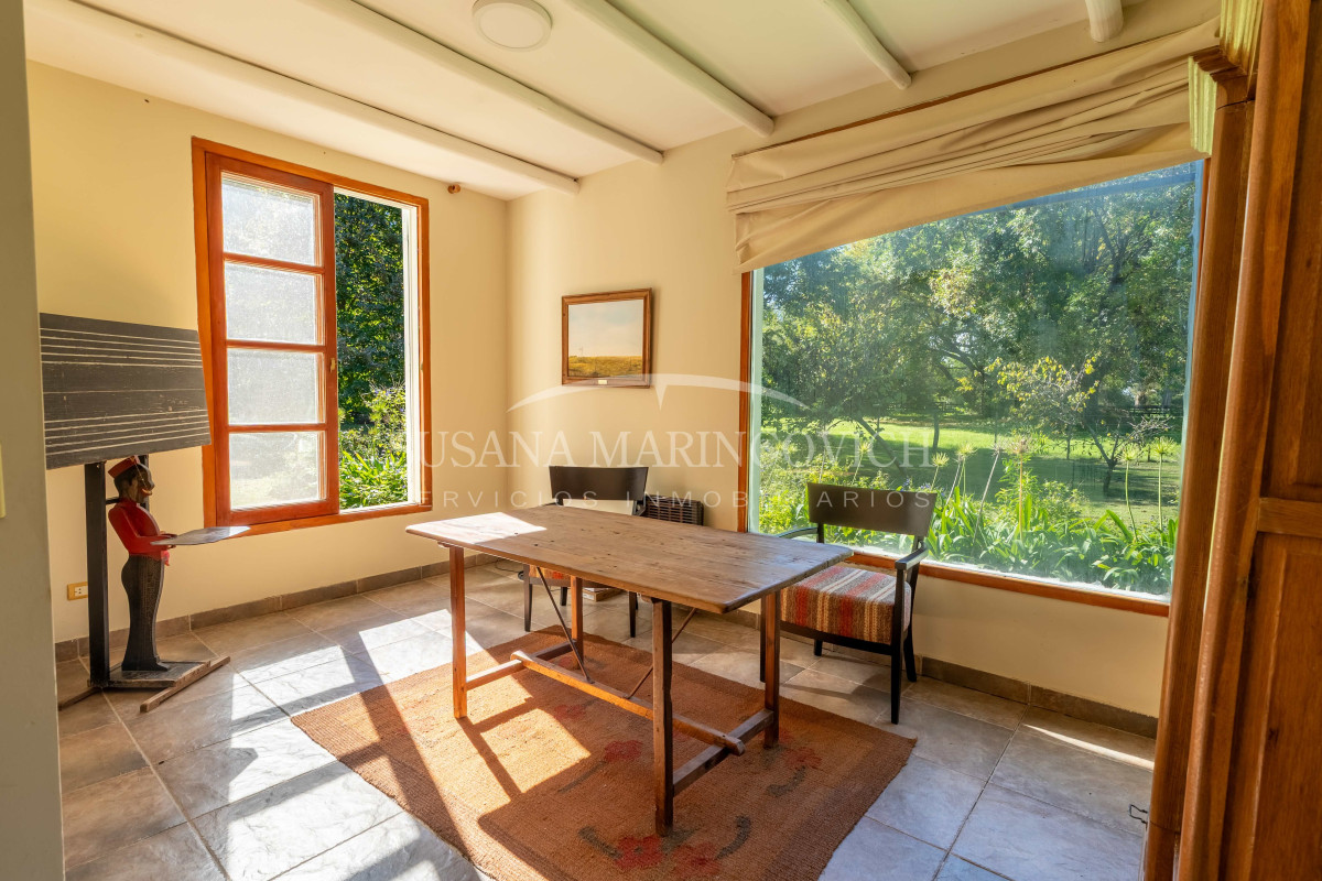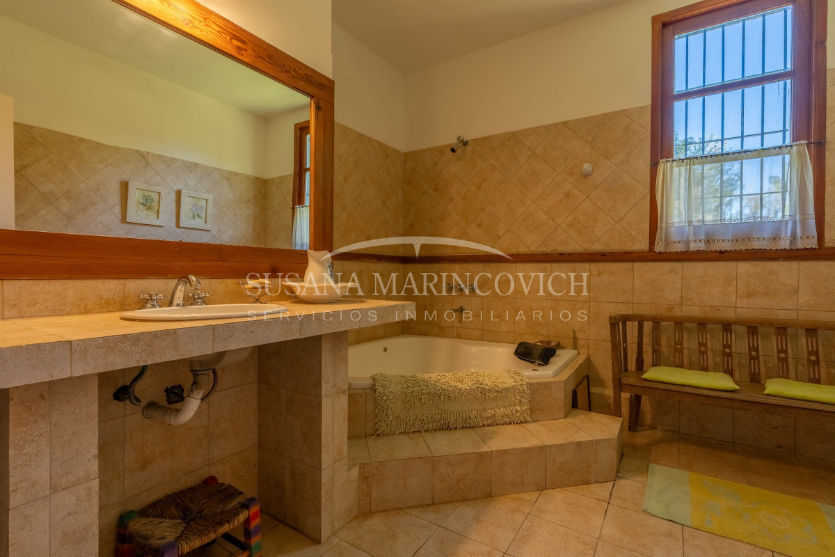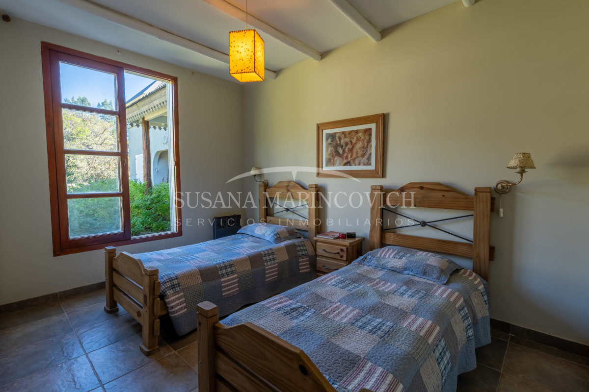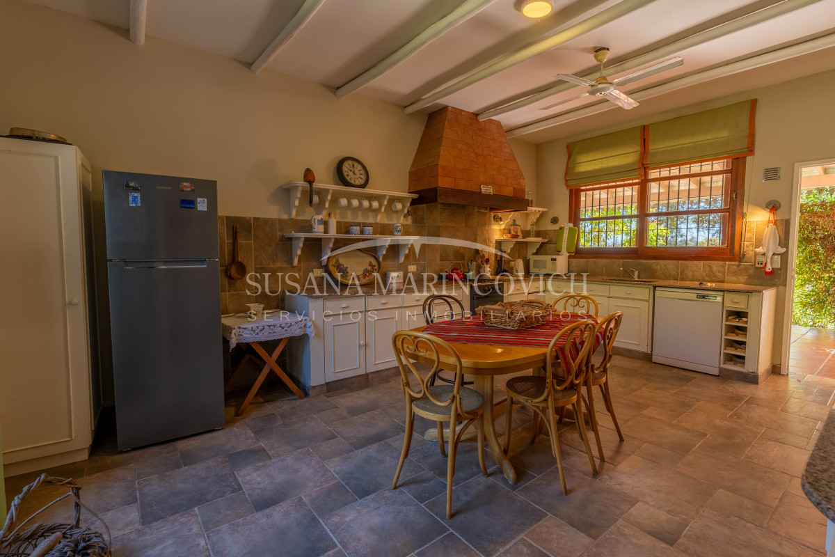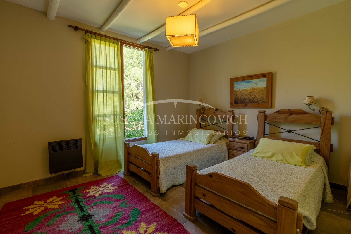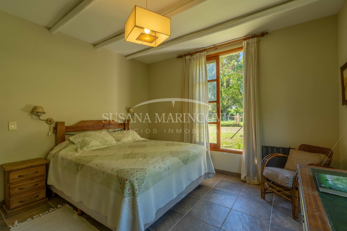 Cuenta además con un galpón que integra lavadero, baño completo y dormitorio de servicio. La pileta dispone de sistema de filtrado propio. La propiedad tiene sistema de alarma, luz eléctrica de línea, grupo electrógeno y perforación a 75 metros de profundidad.