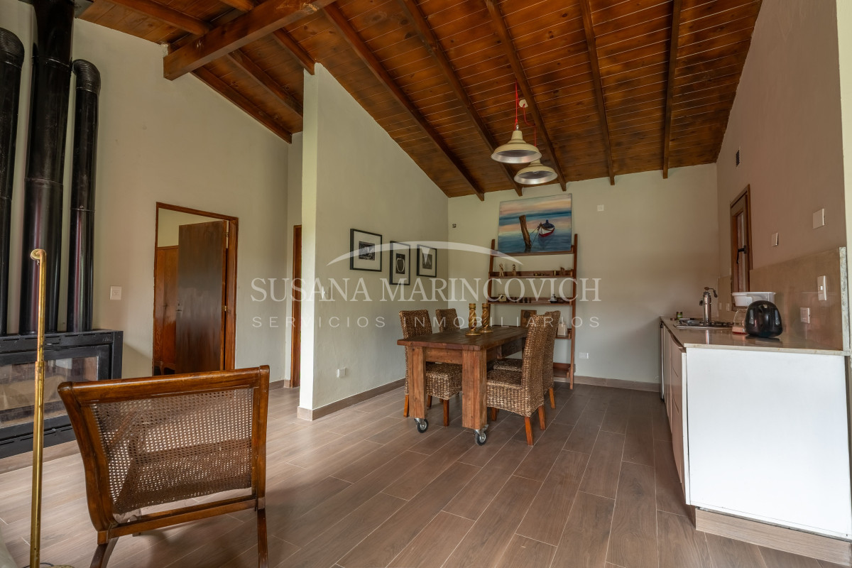 La propiedad cuenta con dos unidades de alojamiento para huéspedes o personal. La casa de huéspedes principal tiene 74 m² con una habitación, baño, living comedor y cocina integrada, equipada con aire acondicionado y salamandra. La segunda unidad, ubicada en la caballeriza, tiene aproximadamente 40 m² con dos habitaciones, living comedor, cocina integrada y baño; puede destinarse también a vivienda de caseros.