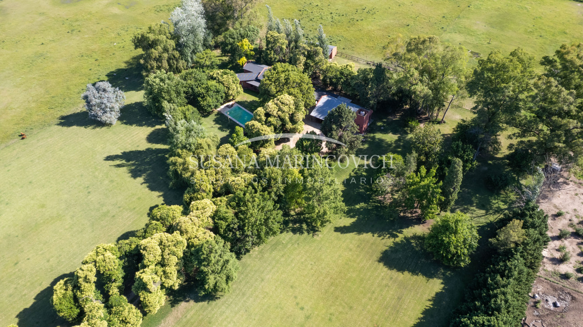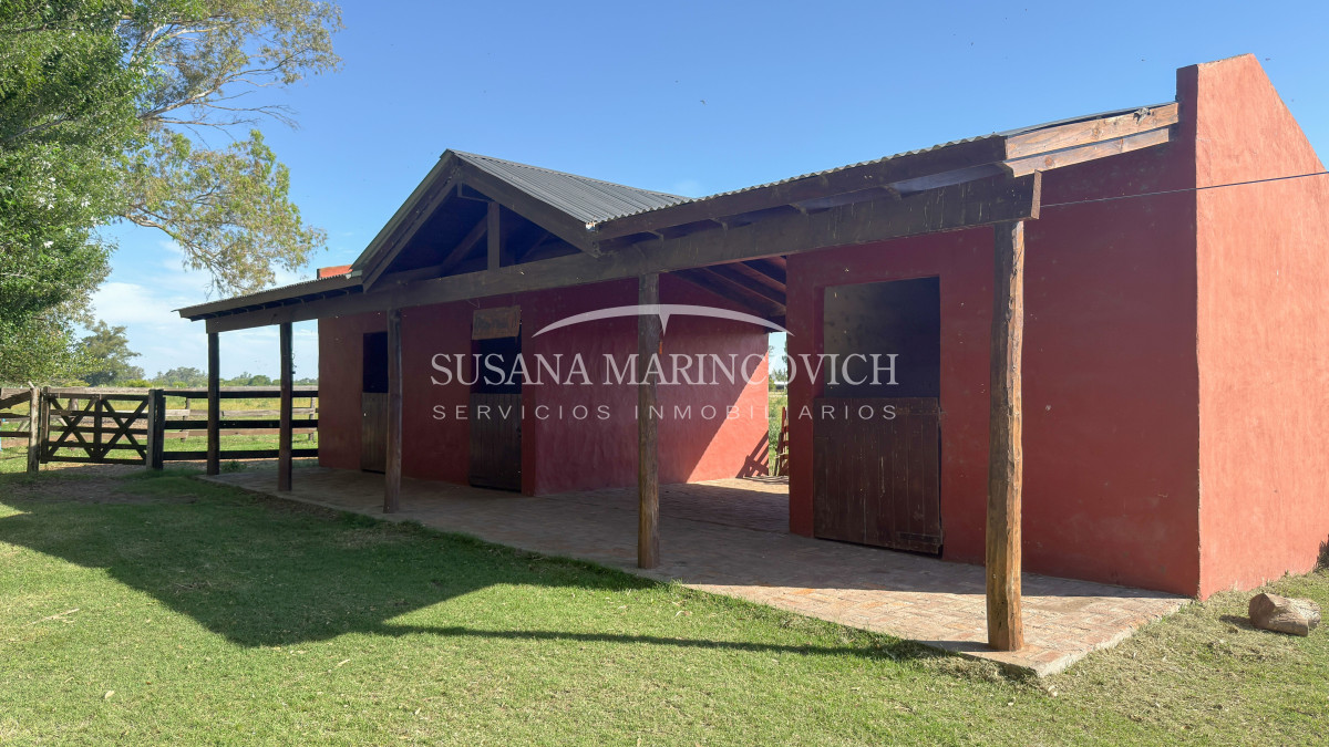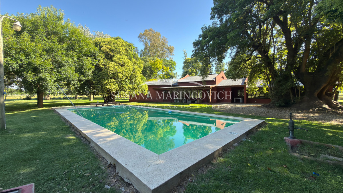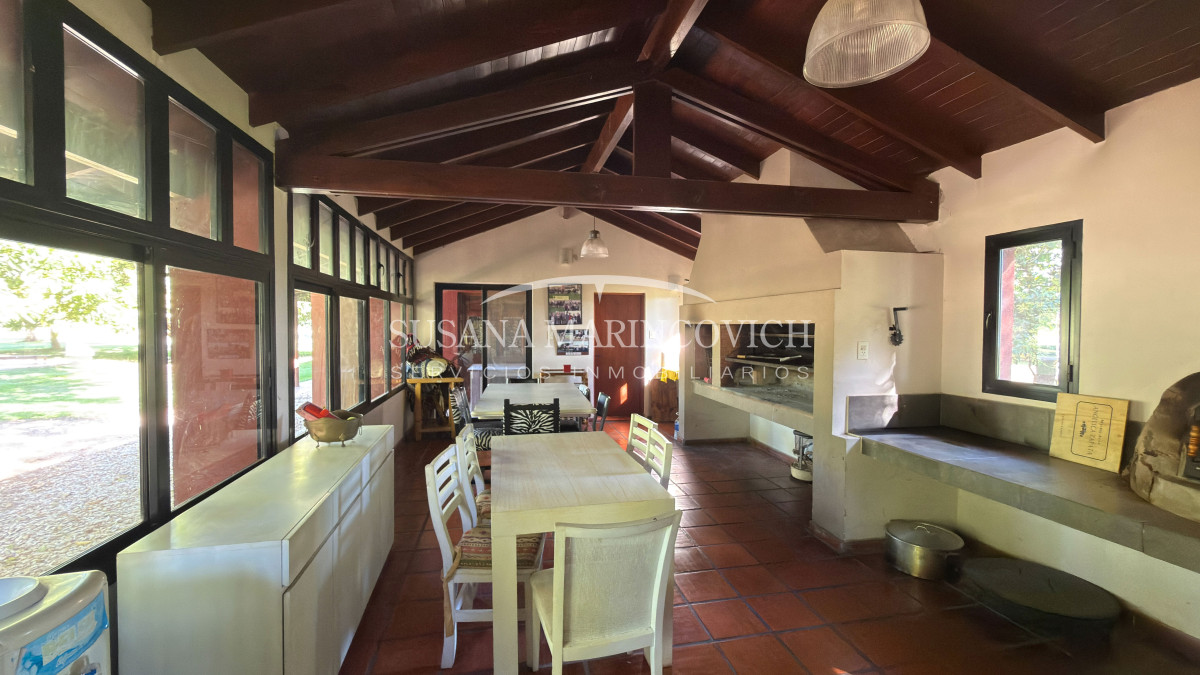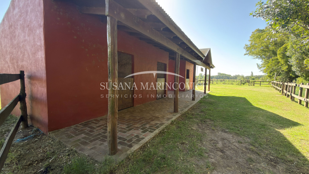 La propiedad cuenta con una casa principal de aproximadamente 250 m², con 3 habitaciones, 3 baños (uno en suite), living, cocina y quincho incorporado. Incluye también un loft de unos 70 m² y una casa de caseros de 50 m², ambos en estado bueno y con necesidades de mejoras. Dispone además de boxes simples (3 unidades), un quincho de 30 m² y una pileta pequeña de buena construcción.