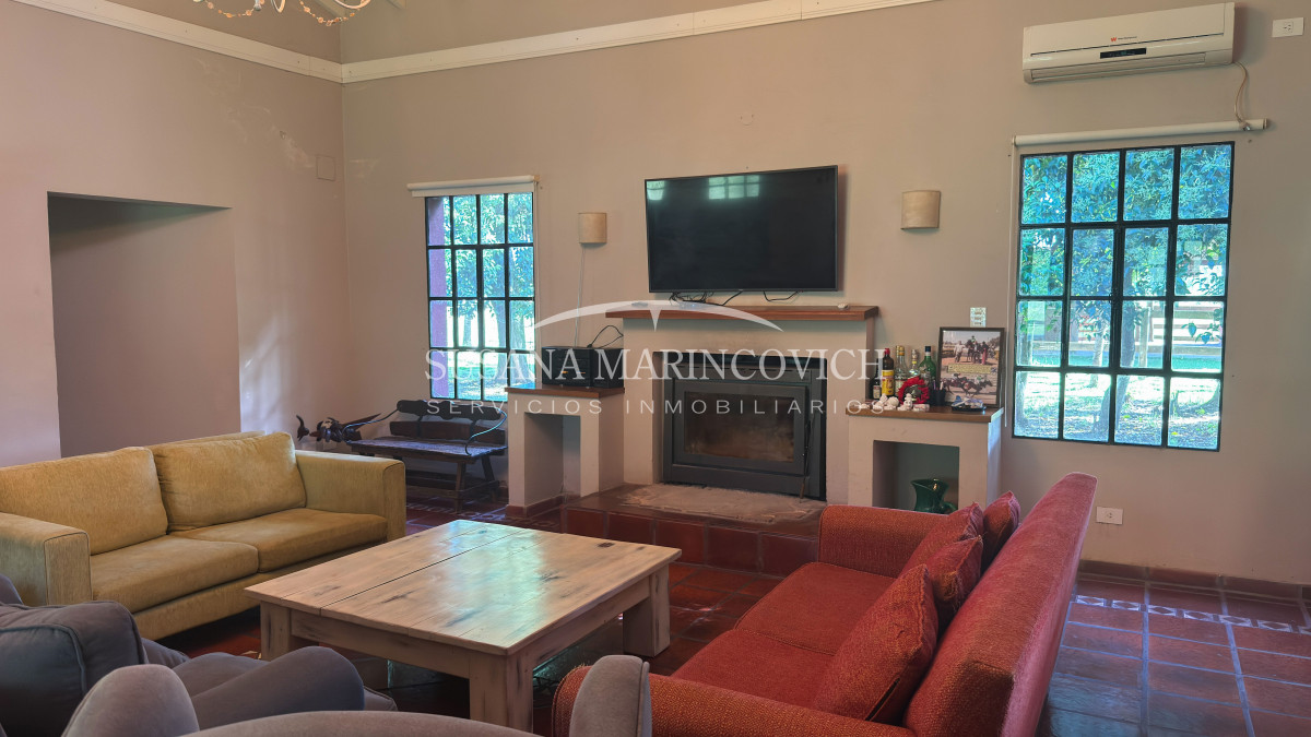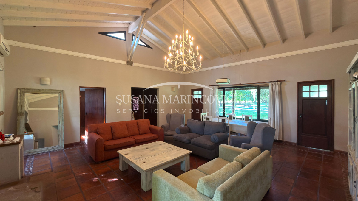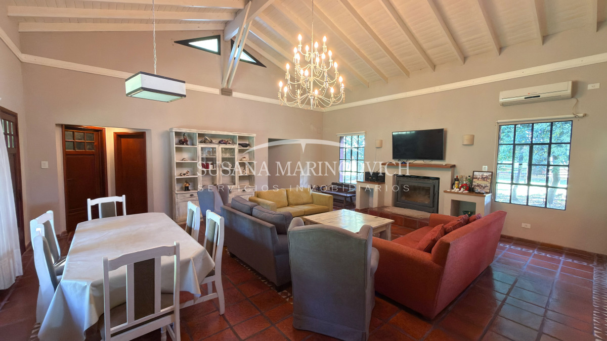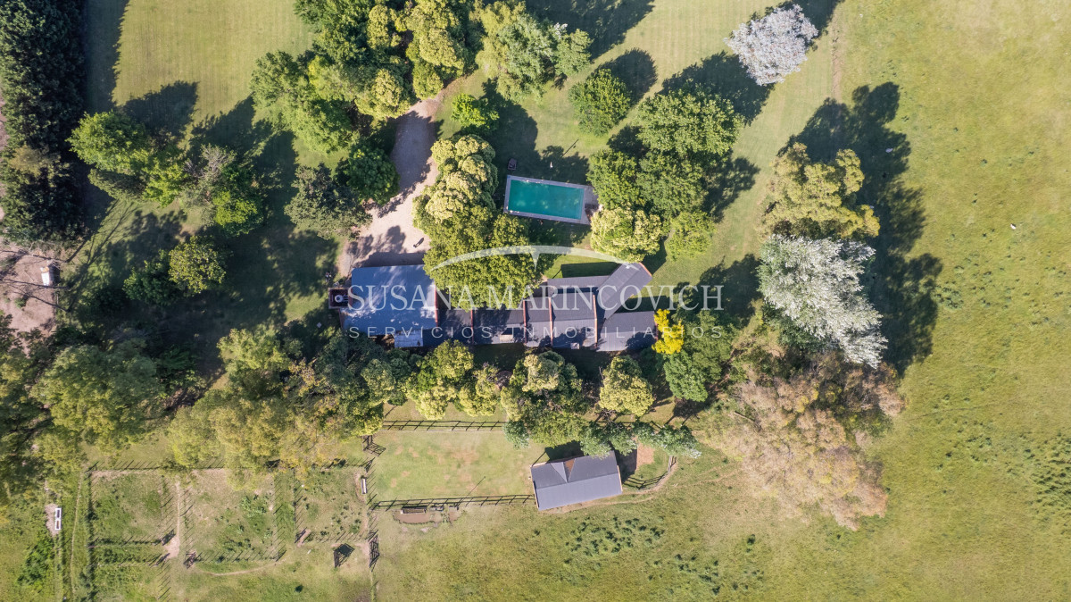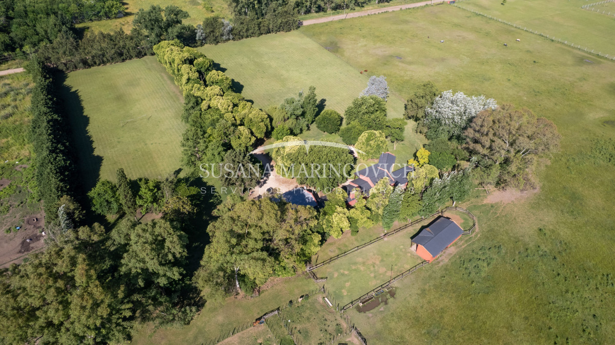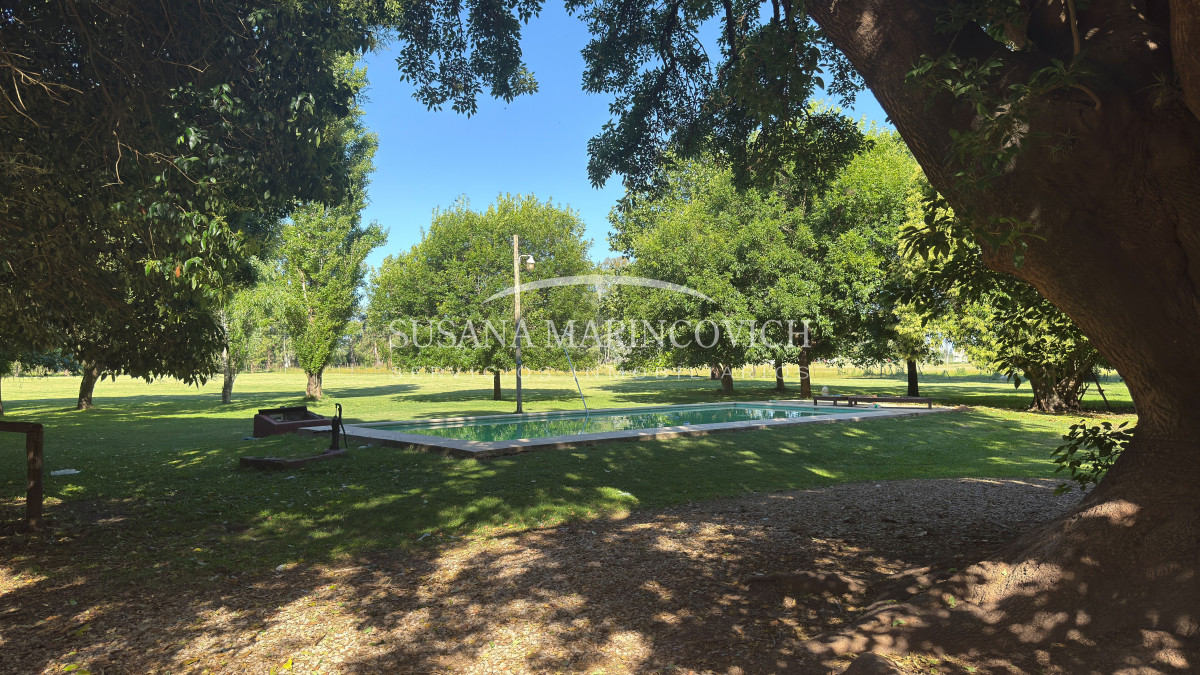 La propiedad cuenta con una casa principal de aproximadamente 250 m², con 3 habitaciones, 3 baños (uno en suite), living, cocina y quincho incorporado. Incluye también un loft de unos 70 m² y una casa de caseros de 50 m², ambos en estado bueno y con necesidades de mejoras. Dispone además de boxes simples (3 unidades), un quincho de 30 m² y una pileta pequeña de buena construcción.
