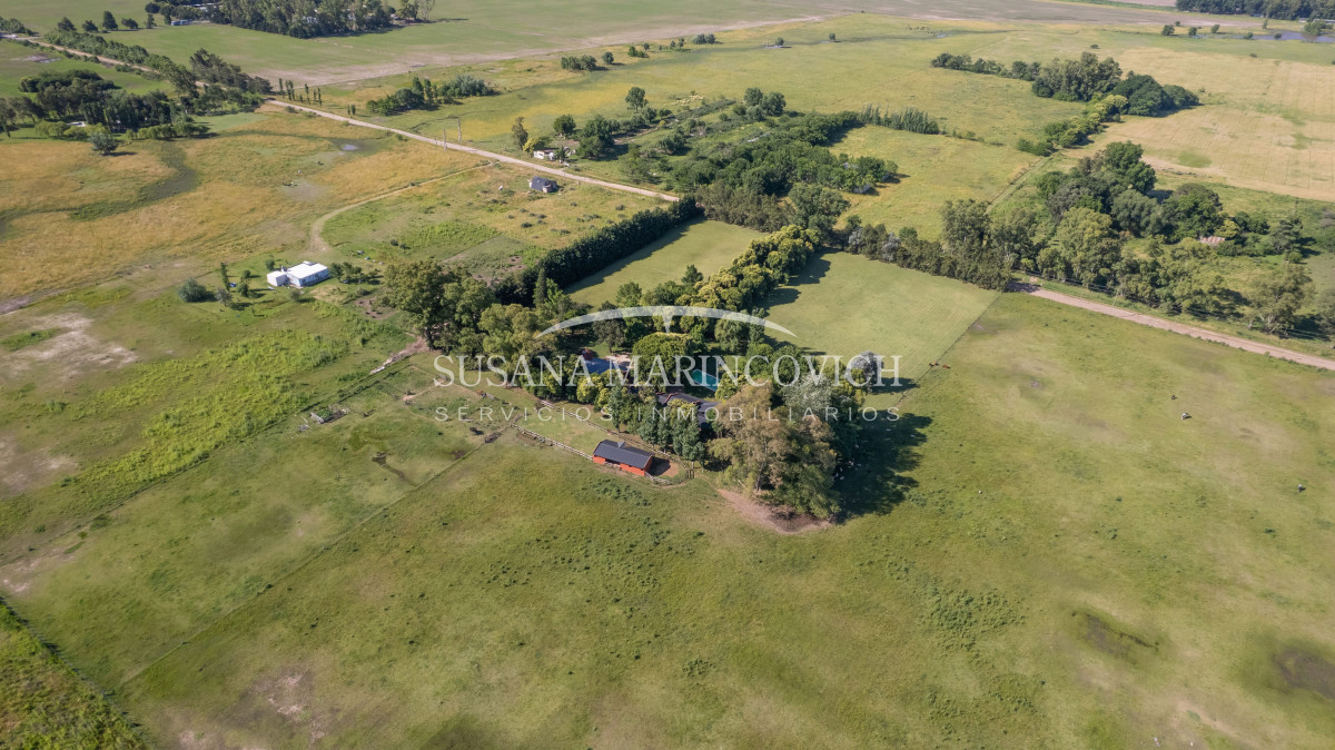 Los servicios disponibles son luz trifásica, agua de bomba, gas por chancha, internet y desagüe por pozo. Los accesos se encuentran a 800 m–1 km de la RP41, mediante camino de tierra afirmado con una calificación estimada de 3/5. El campo presenta arboleda consolidada, parquización en 2 hectáreas, alambrados en buen estado y un sector ganadero activo en 5 hectáreas.