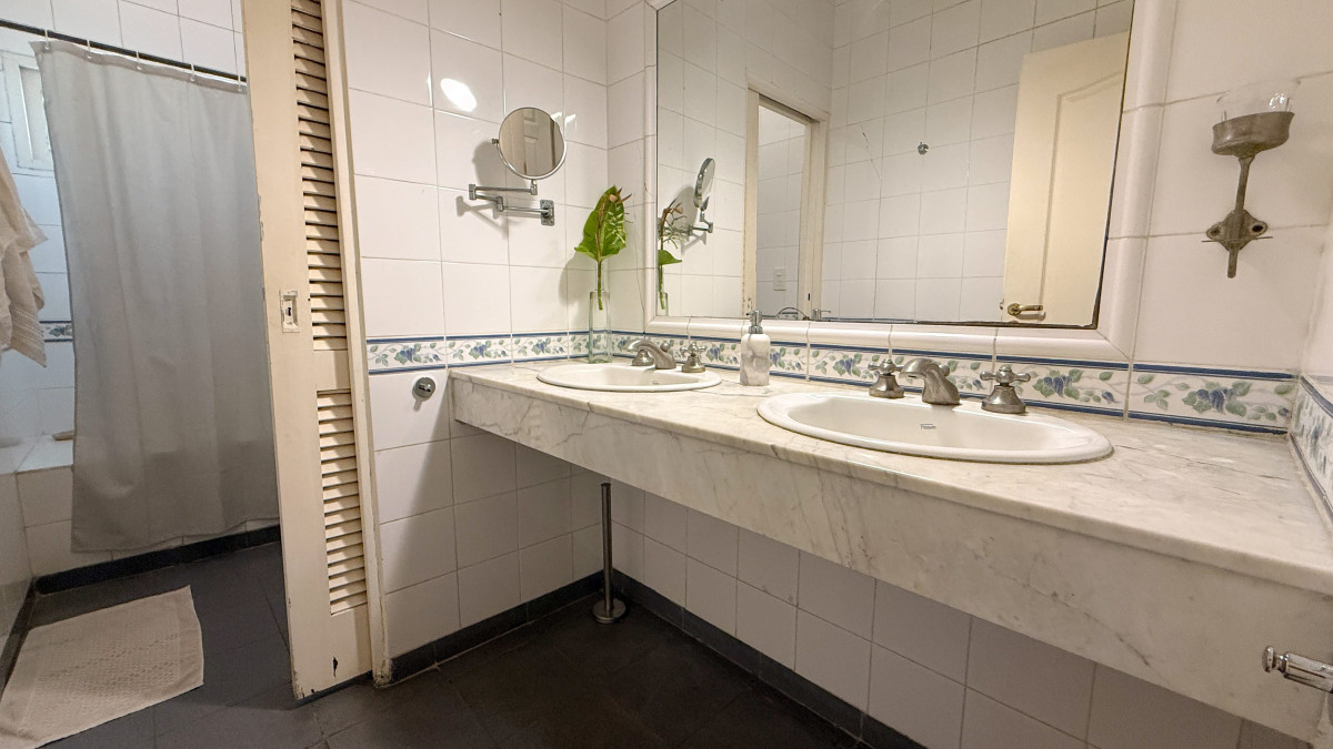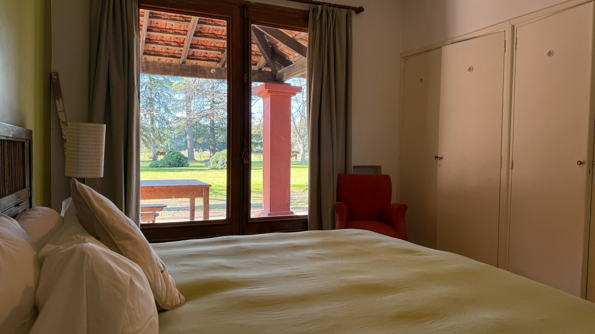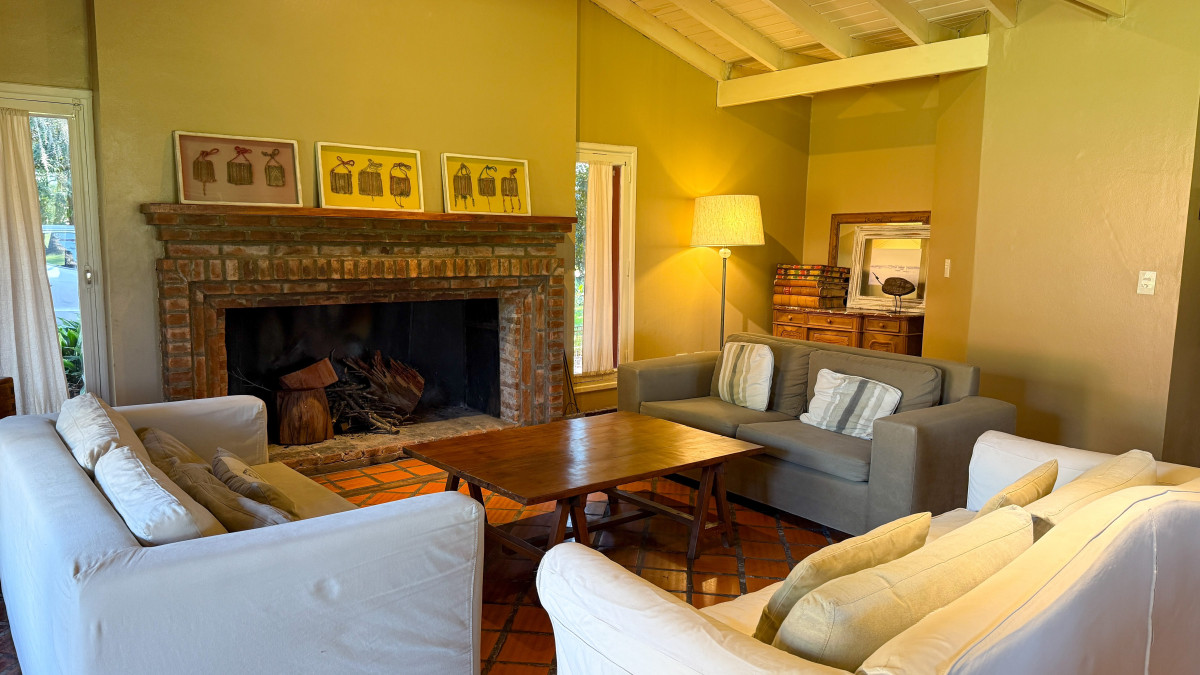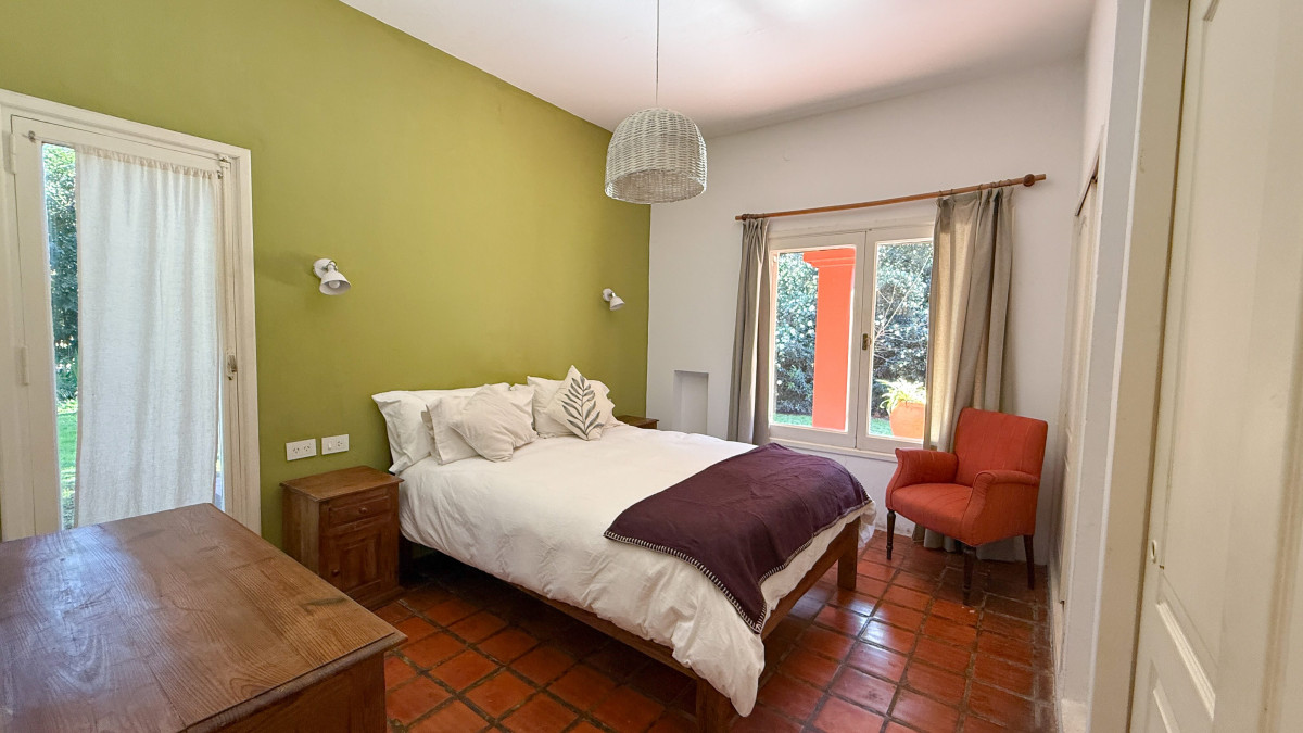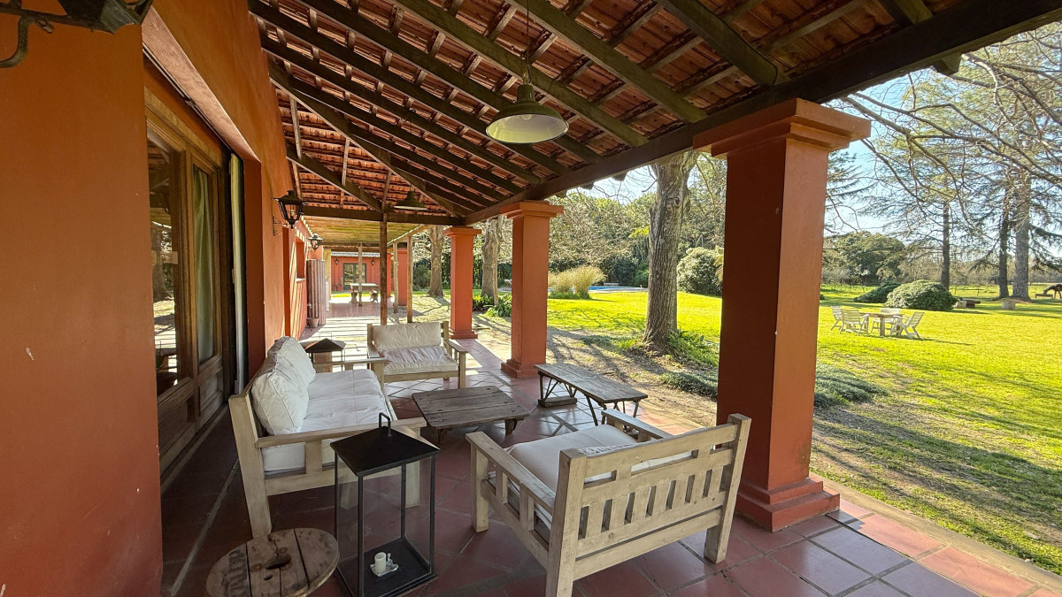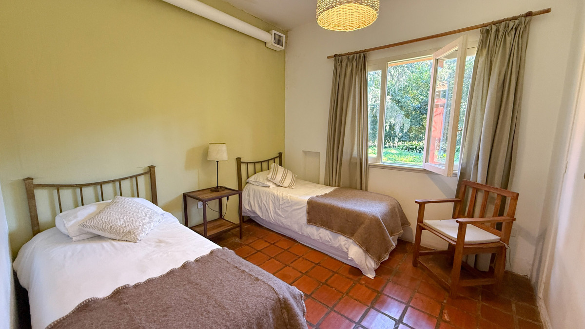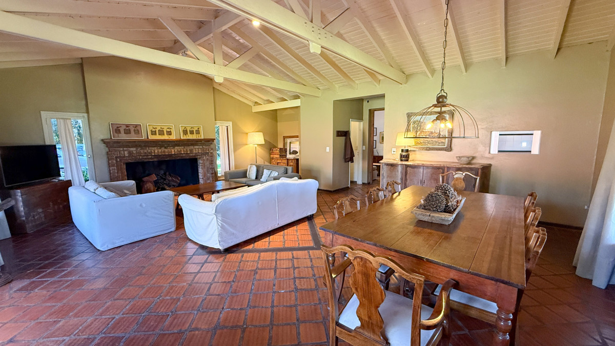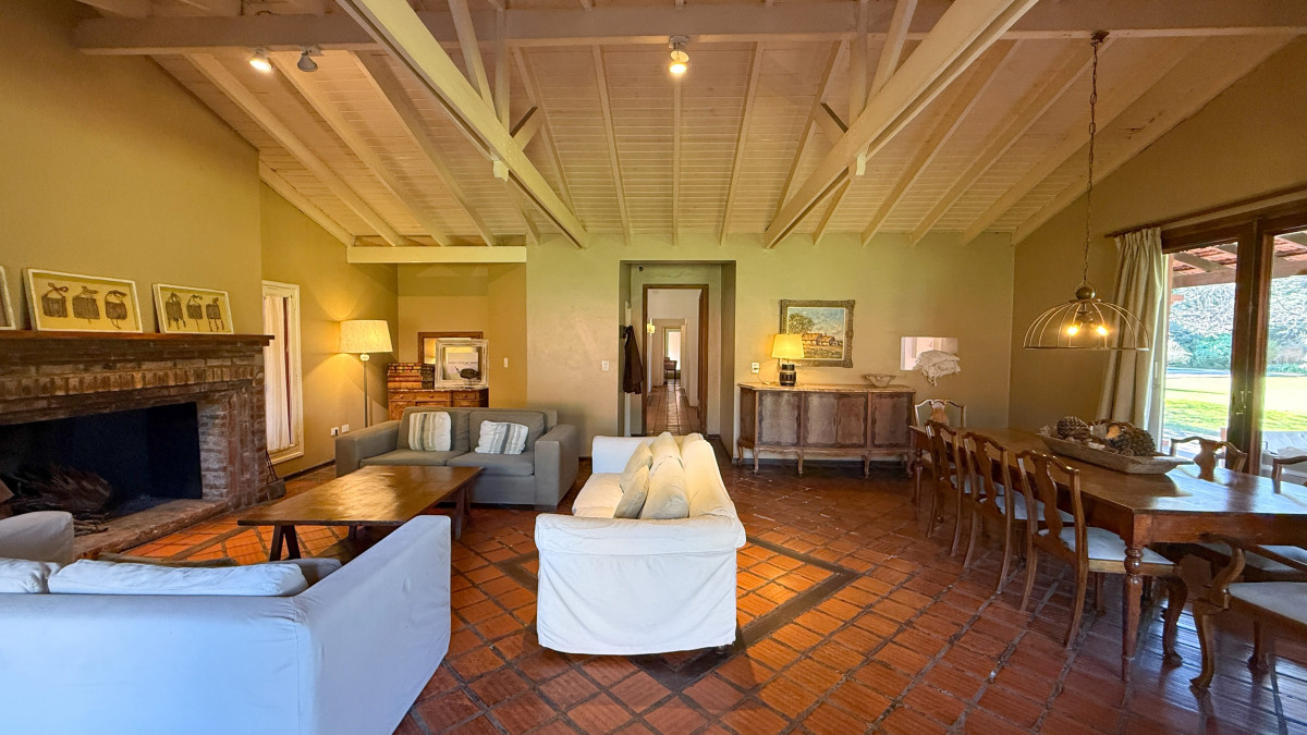 La casa principal ofrece amplio living-comedor con estufa hogar, cocina equipada, comedor diario con estufa Tromen y un sistema de calefacción a leña que distribuye el calor a las habitaciones. Dispone de cuatro dormitorios (uno en suite), dos baños completos, toilette y galería con vista al parque.