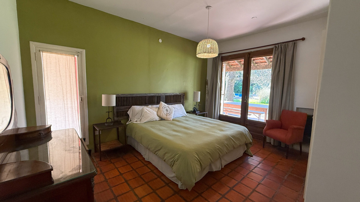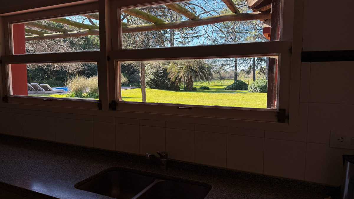 El quincho incluye parrilla, barra, habitación y baño, ideal para usos múltiples. La piscina, de forma orgánica, está rodeada de vereda antideslizante. Además, la propiedad cuenta con una casa de caseros independiente de 117 m² cubiertos.