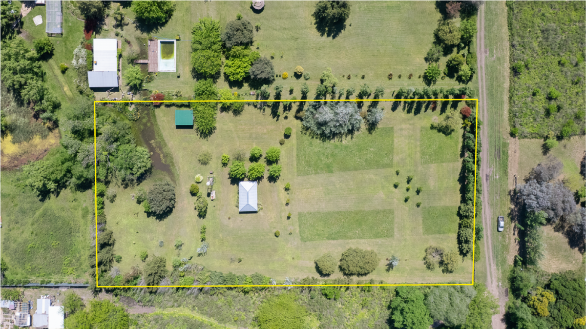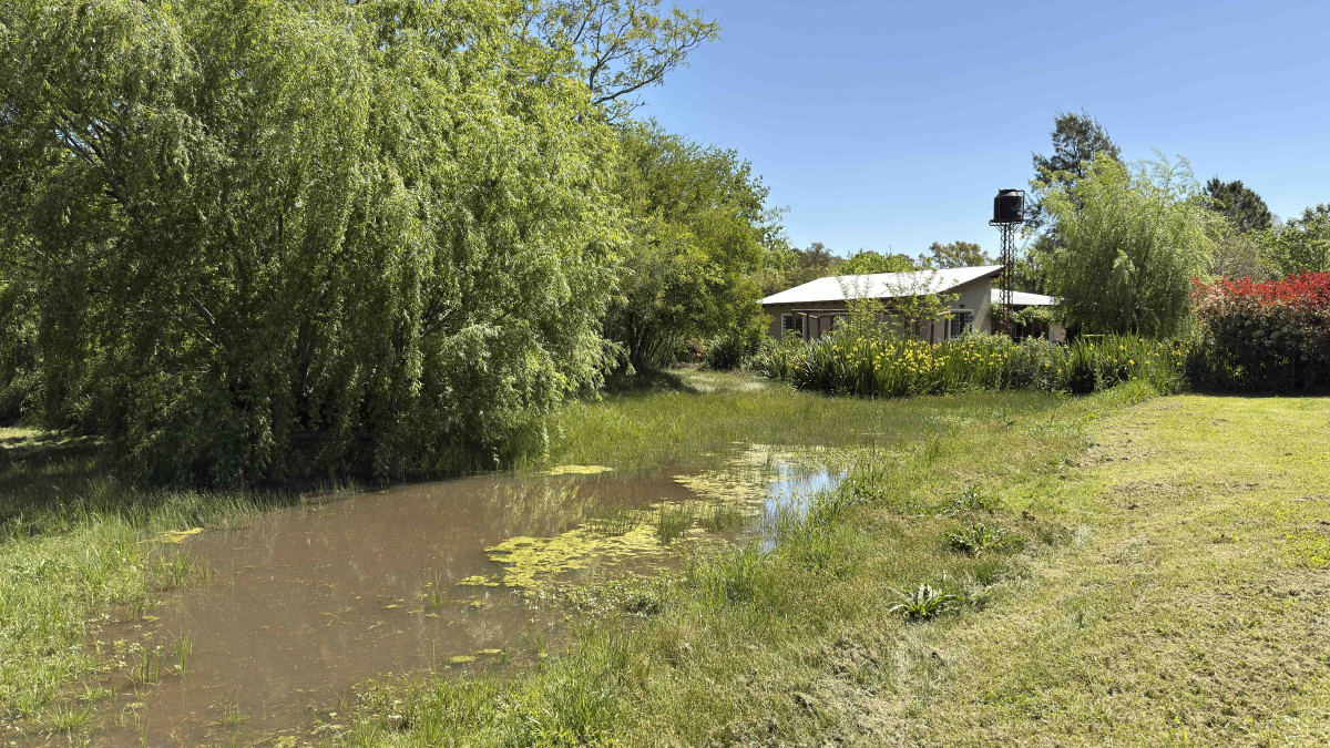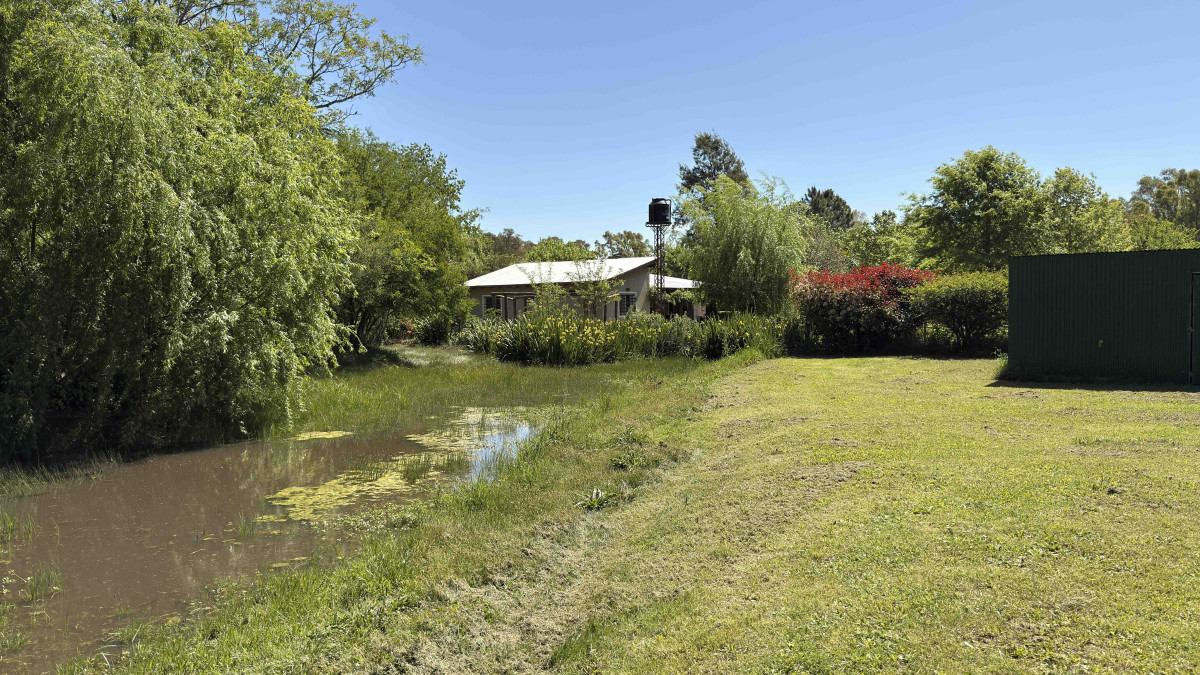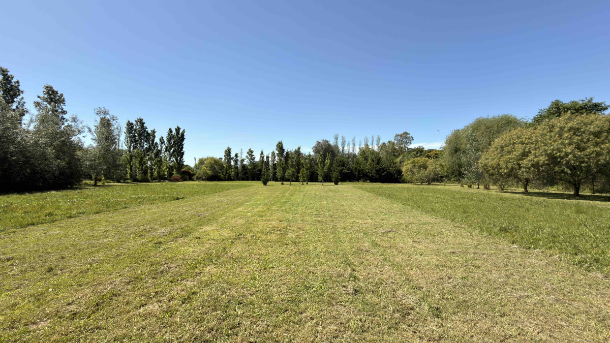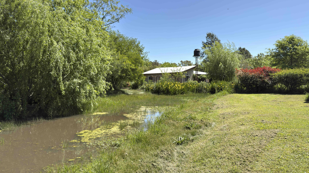 El terreno incluye una cañada que lo atraviesa y un puente de madera que conecta los sectores, ofreciendo un entorno natural y tranquilo.